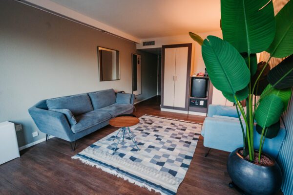 Onze Executive Suite is onze meest luxueuze kamertype, ideaal voor langere verblijven. Deze suite beschikt over aparte zit- en slaapgedeeltes en biedt uitgebreide voorzieningen, perfect afgestemd op de behoeften van bijvoorbeeld zakelijke reizigers.